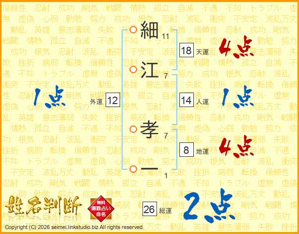 細江孝一さんの総運は26画の2点!