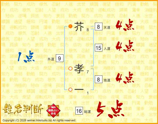 芥孝一さんの総運は16画の5点!