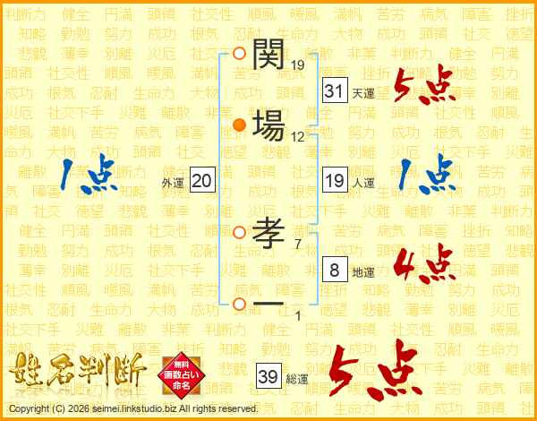 関場孝一さんの総運は39画の5点!