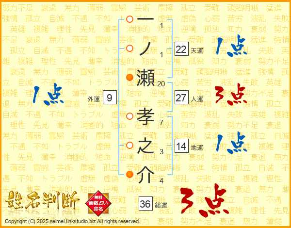 一ノ瀬孝之介さんの人運は27画の3点!