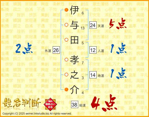 伊与田孝之介さんの総運は38画の4点!