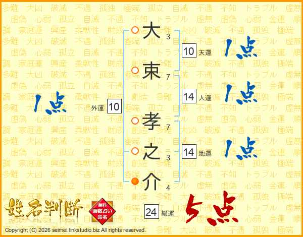 大束孝之介さんの総運は24画の5点!