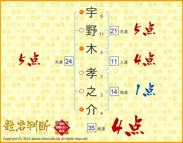 宇野木孝之介さんの総運は35画の4点!