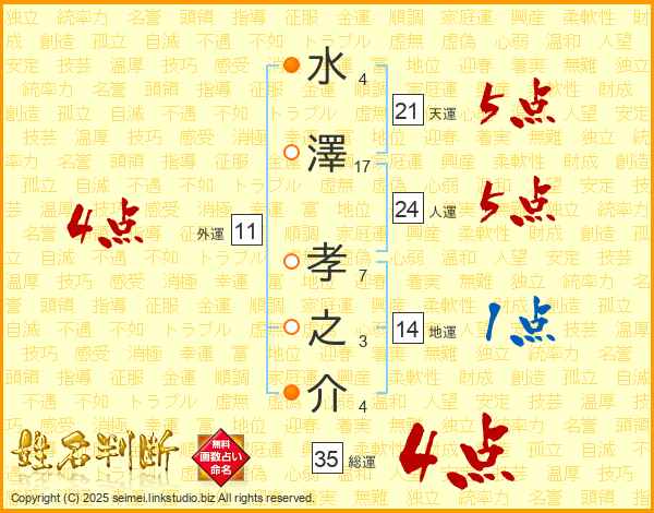 水(4画)澤(17画) 孝(7画)之(3画)介(4画)