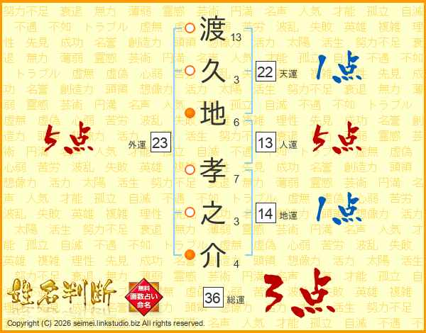 渡久地孝之介さんの人運は13画の5点!