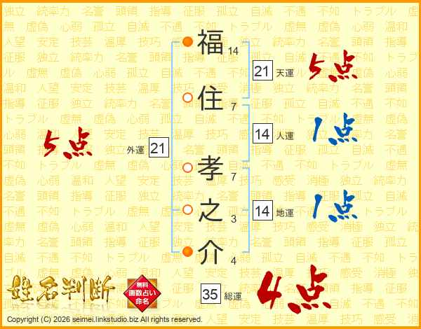 福(14画)住(7画) 孝(7画)之(3画)介(4画)