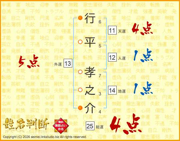 行(6画)平(5画) 孝(7画)之(3画)介(4画)