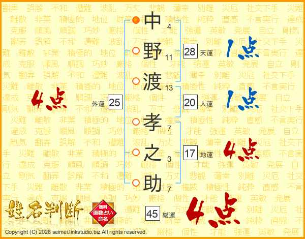 中野渡孝之助さんの総運は45画の4点!