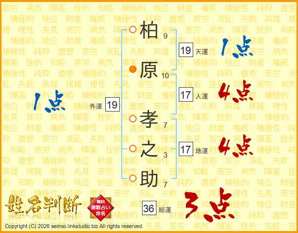 柏原孝之助さんの総運は36画の3点!