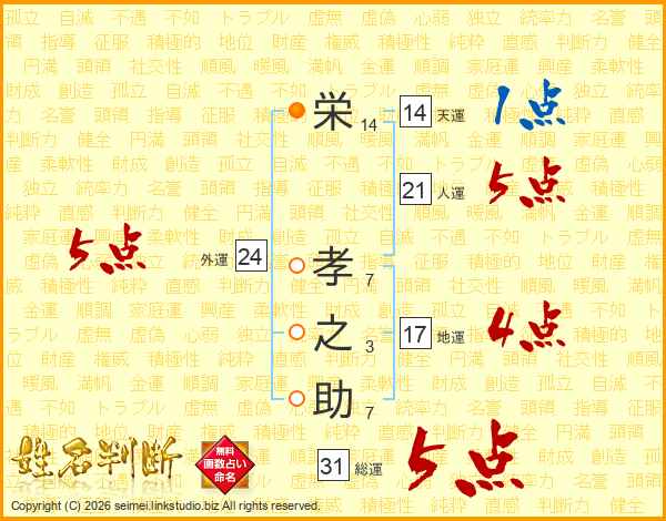 栄(14画) 孝(7画)之(3画)助(7画)