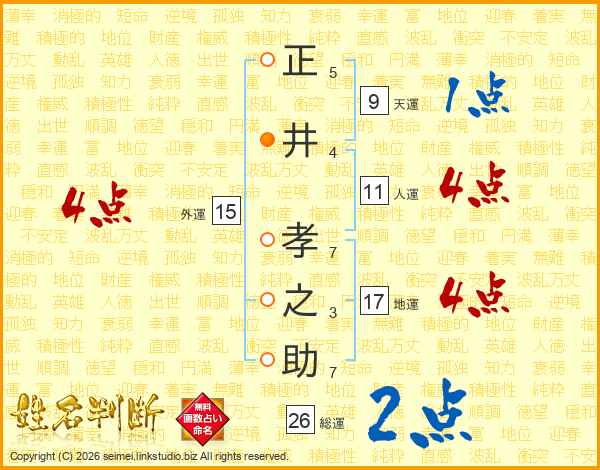 正(5画)井(4画) 孝(7画)之(3画)助(7画)