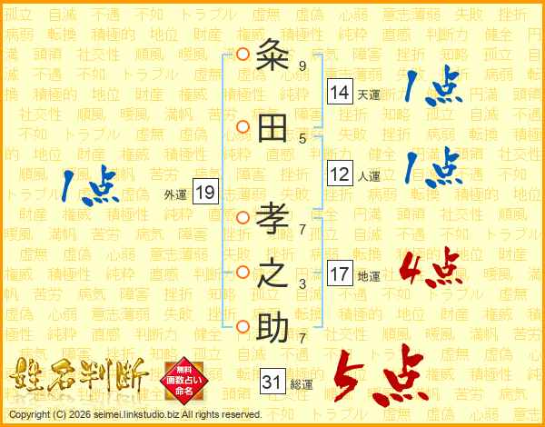 粂田孝之助さんの総運は31画の5点!