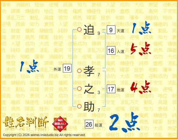 迫孝之助さんの総運は26画の2点!