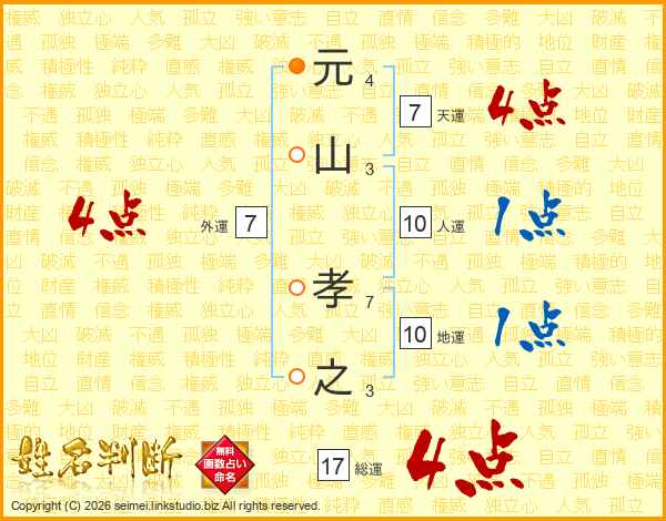 元山孝之さんの総運は17画の4点!