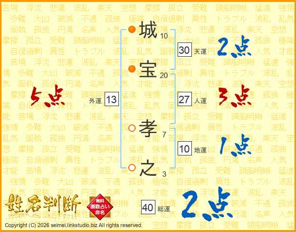 城宝孝之さんの総運は40画の2点!