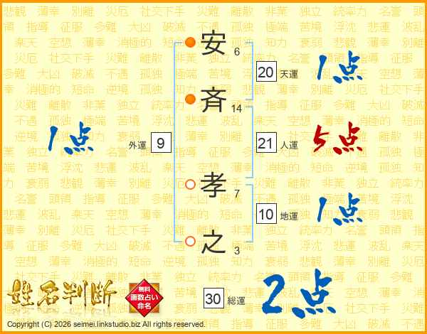 安斉孝之さんの天運は20画の1点!