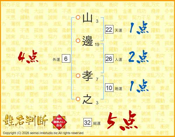 山邊孝之さんの総運は32画の5点!
