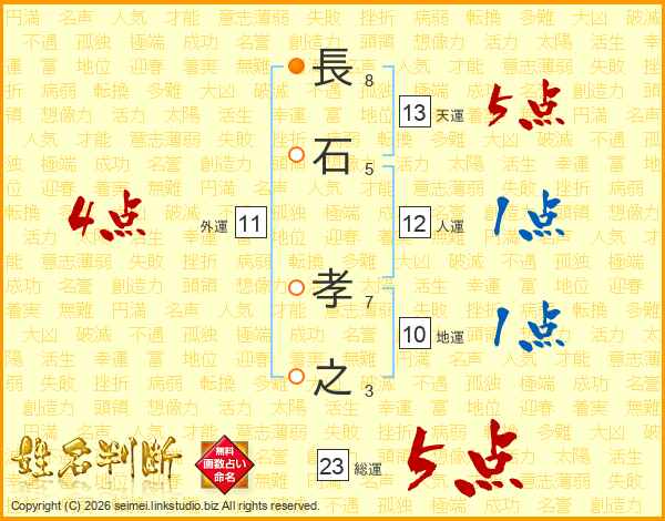 長石孝之さんの総運は23画の5点!