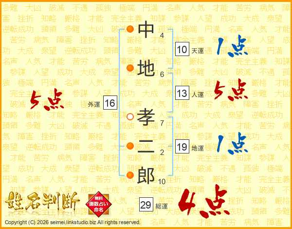 中地孝二郎さんの総運は29画の4点!