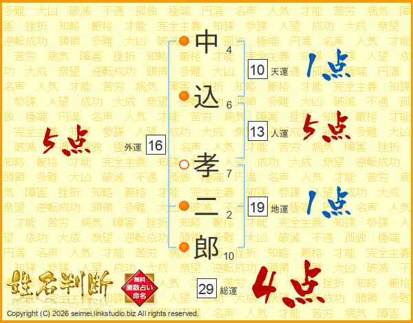 中込孝二郎さんの人運は13画の5点!