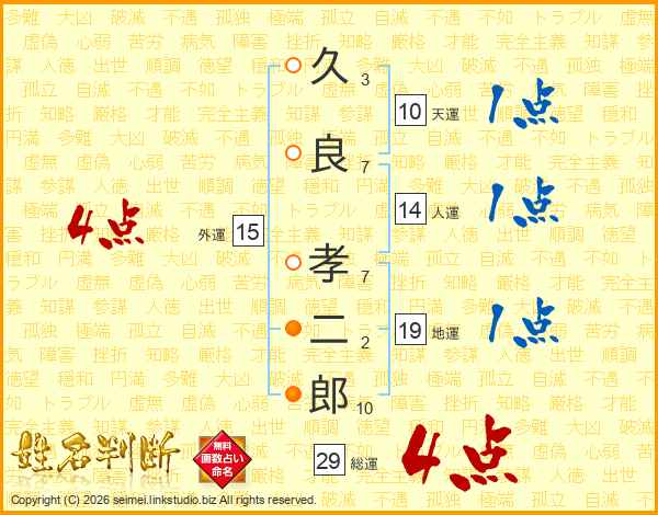 久良孝二郎さんの総運は29画の4点!