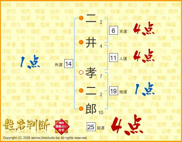 二(2画)井(4画) 孝(7画)二(2画)郎(10画)