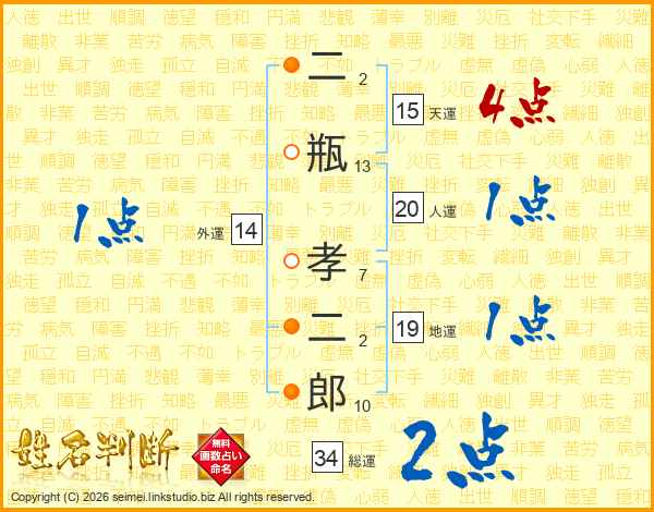 二(2画)瓶(13画) 孝(7画)二(2画)郎(10画)
