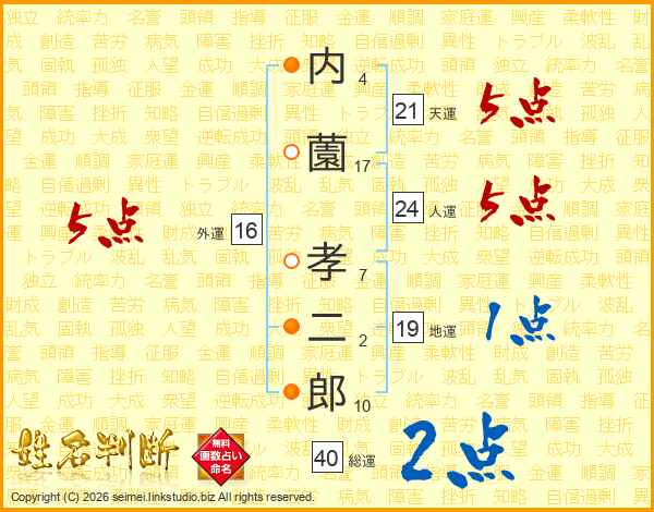 内薗孝二郎さんの天運は21画の5点!