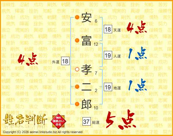 安富孝二郎さんの総運は37画の5点!
