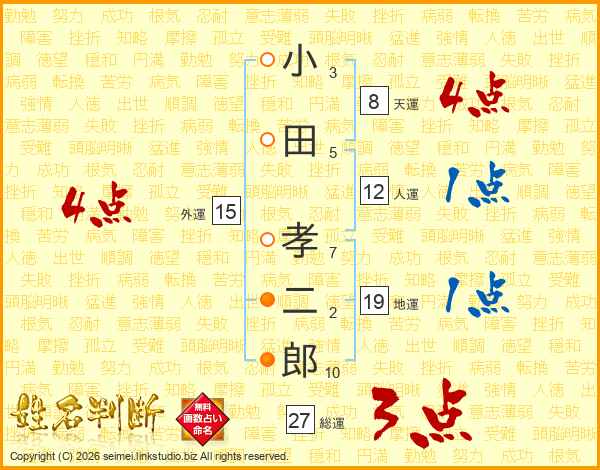 小田孝二郎さんの総運は27画の3点!