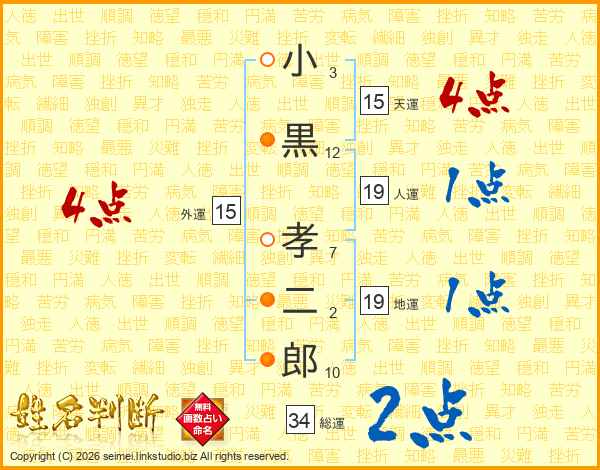 小黒孝二郎さんの総運は34画の2点!