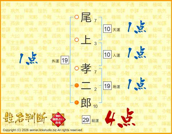 尾上孝二郎さんの総運は29画の4点!