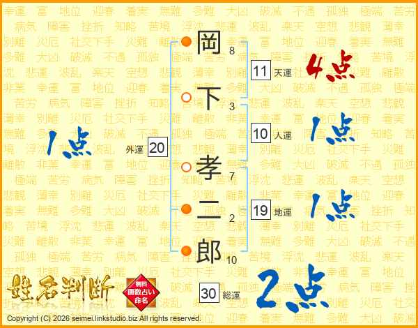 岡下孝二郎さんの天運は11画の4点!