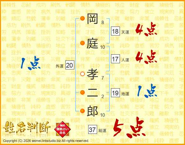 岡庭孝二郎さんの総運は37画の5点!