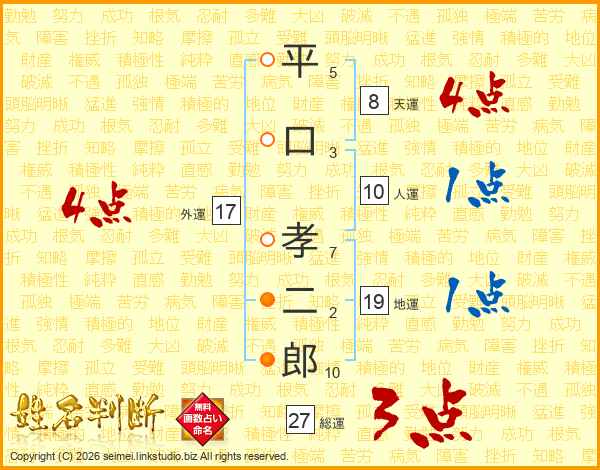平口孝二郎さんの総運は27画の3点!