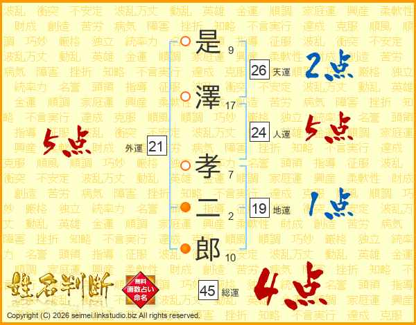 是澤孝二郎さんの総運は45画の4点!