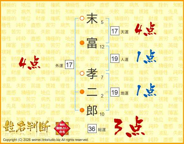 末富孝二郎さんの天運は17画の4点!