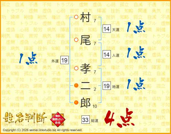 村尾孝二郎さんの総運は33画の4点!