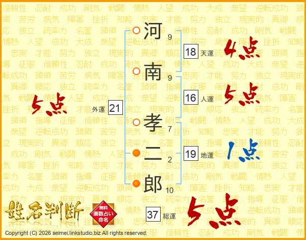 河南孝二郎さんの外運は21画の5点!