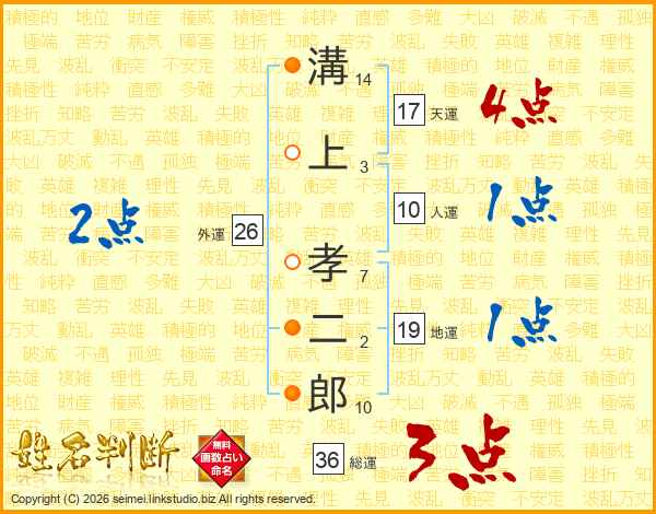 溝上孝二郎さんの天運は17画の4点!