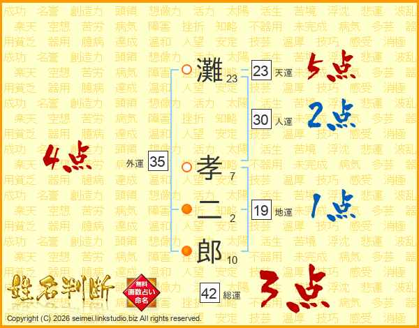 灘孝二郎さんの外運は35画の4点!