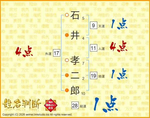 石井孝二郎さんの外運は17画の4点!