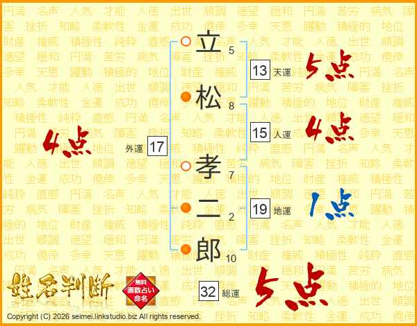 立松孝二郎さんの総運は32画の5点!