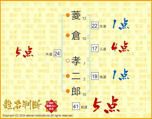 菱倉孝二郎さんの総運は41画の5点!