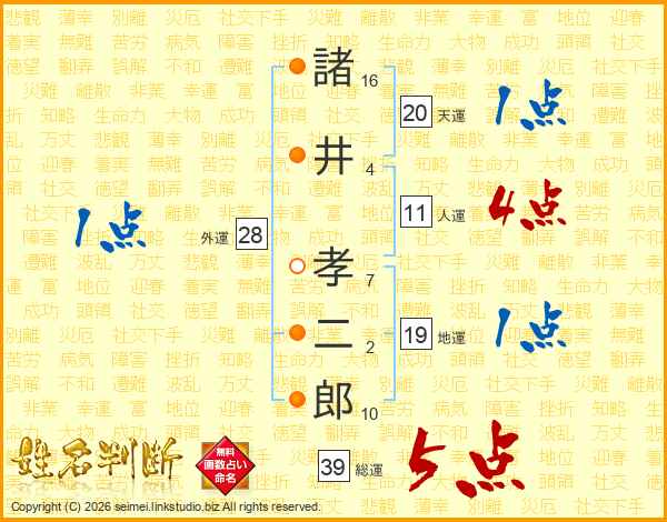 諸(16画)井(4画) 孝(7画)二(2画)郎(10画)
