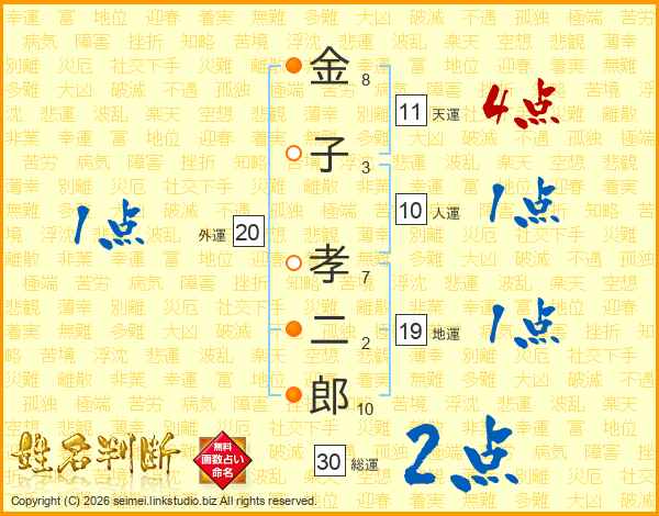 金子孝二郎さんの天運は11画の4点!