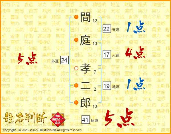 間庭孝二郎さんの総運は41画の5点!