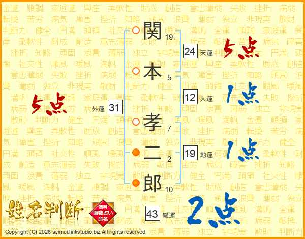 関本孝二郎さんの外運は31画の5点!