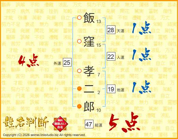 飯窪孝二郎さんの総運は47画の5点!