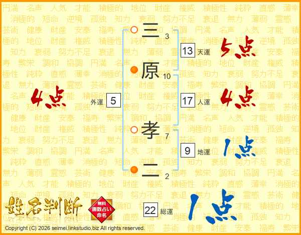 三原孝二さんの総運は22画の1点!